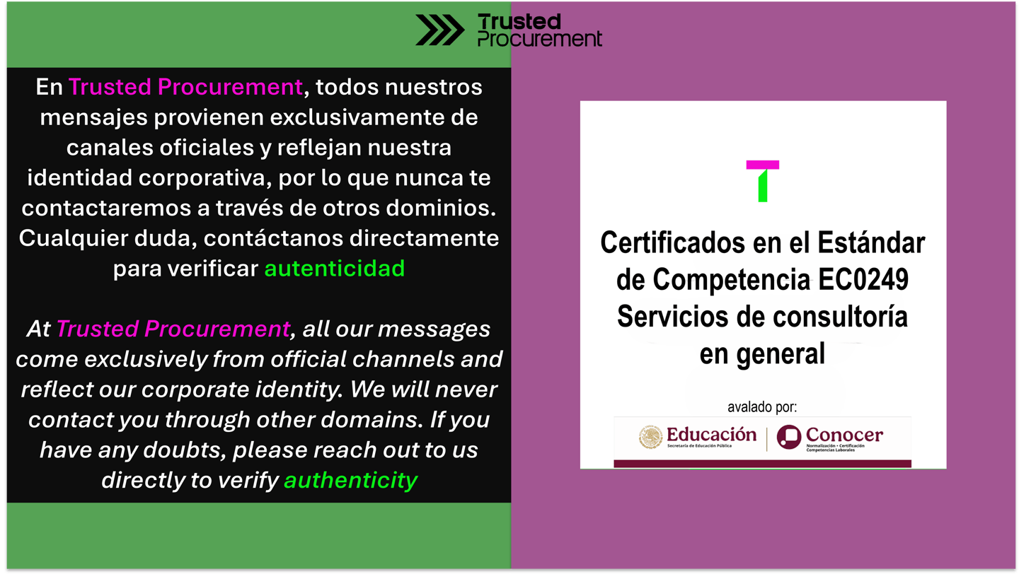 Creemos en el éxito de tu empresa y en Trusted Procurement encontrarás un aliado estratégico para alcanzar los mejores resultados tangibles a través de los siguientes servicios.