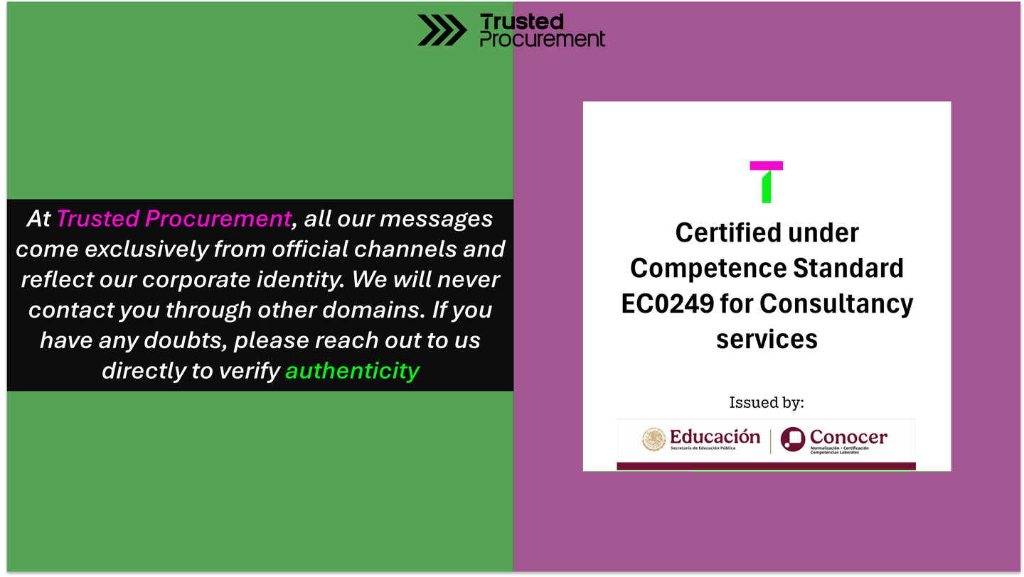 We believe in your company success, in Trusted Procurement, you will find a strategic ally through: